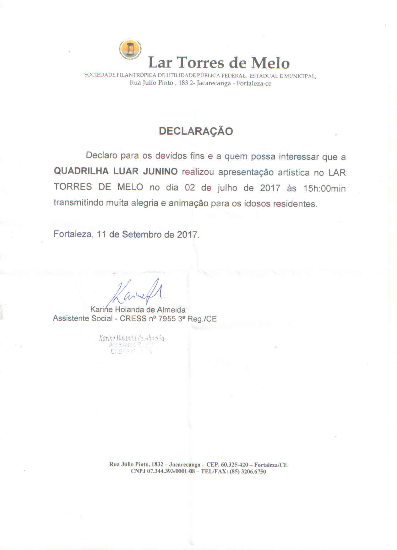 A Quadrilha já foi contemplada nos editais 2017, 2018 e 2019 ligado ao movimento Junino, o que possibilitou a execução de belo trabalho Junto ao Público Infanto-Juvenil que foi beneficiado pelas ações decorrentes do apoio e fomento necessário para a execução das propostas destes anos. Faz dois anos que o grupo está realizado o ensaio da quadrilha no Bairro do Pirambu, no sentido pode contemplar crianças e adolescestes essa comunidade.