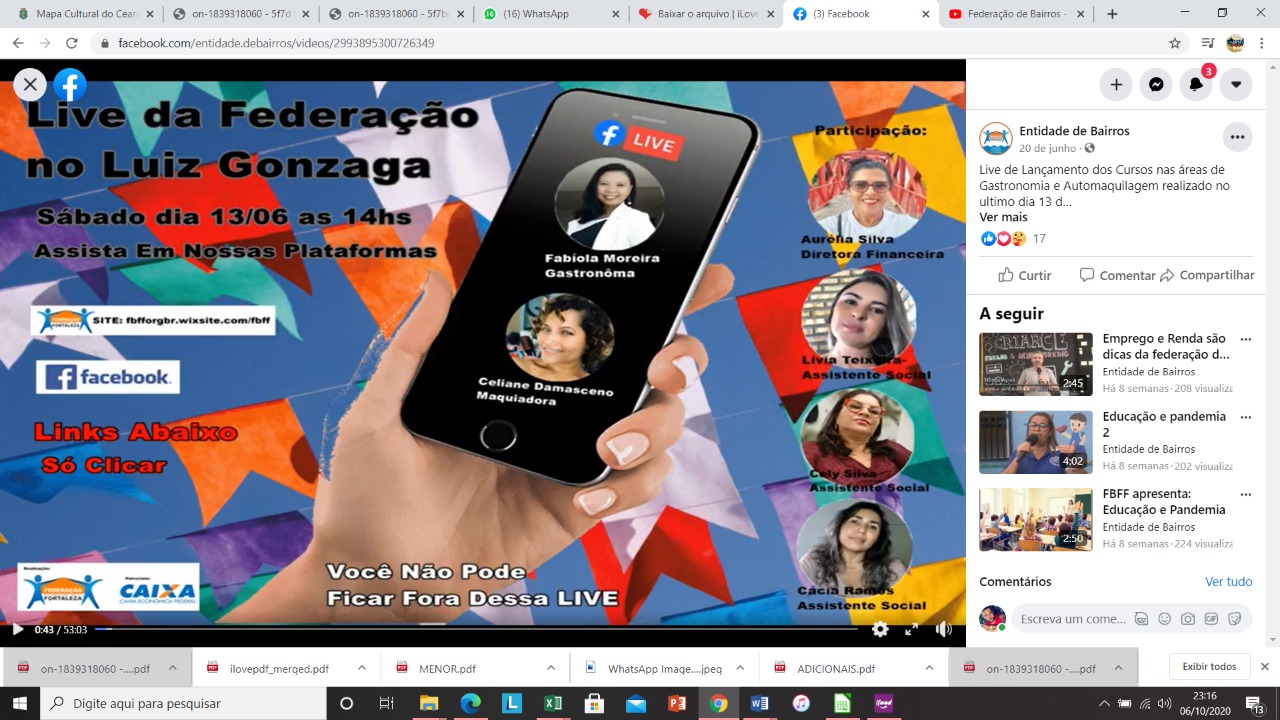 PARTICIPAÇÃO NA LIVE ALINE MEL FORRONA VEIA , APRESENTANDO O PROJETO TALENTOS DAS PERIFERIAS.