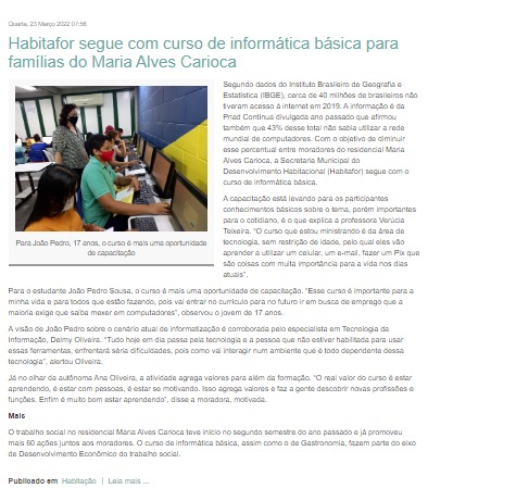 colaboração com o Instituto Imparh. Atua na Coordenadora de projetos sociais e