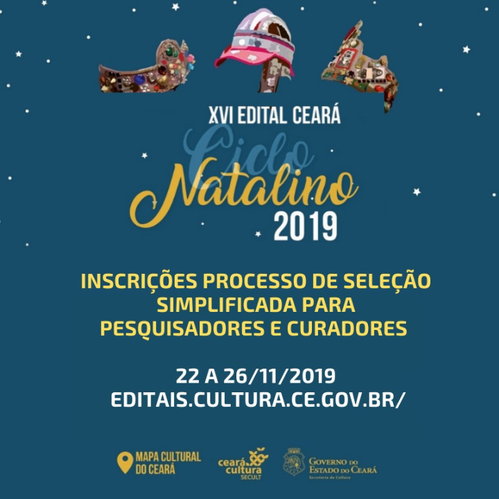 O Processo de Seleção Simplificado para Pesquisadores e Curadores. Dando seguimento e fortalecendo o caminho da Pesquisa nos editais dos ciclos da cultura popular, o XIV Edital Ceará Ciclo Natalino terá uma Comissão de Pesquisadores e Curadores acompanhando as 14 Mostras Regionais.